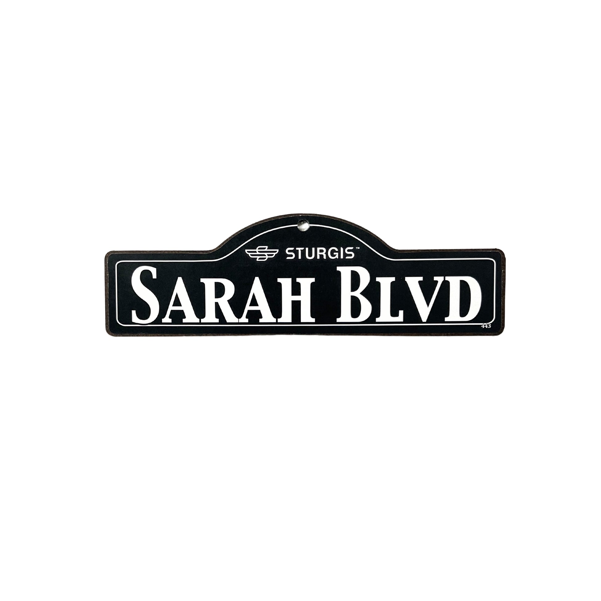 Add a personalized touch to your space with this custom "Sarah" street sign, inspired by the official Sturgis Motorcycle Rally design. Crafted from high-quality wood, this unique motorcycle souvenir is perfect for bikers, rally enthusiasts, and collectors of Sturgis rally memorabilia. Whether you're decorating your garage, man cave, office, or home, this custom biker decor brings the thrill of the open road right to you.